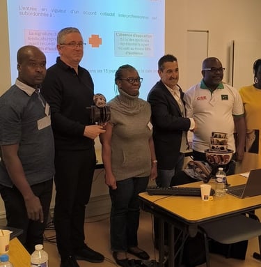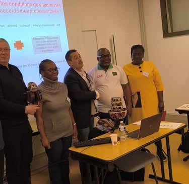 Du 08 au 20 Mars 2025, une délégation de douze (12) responsables de la Centrale Espoir a séjourné à Paris en France dans le cadre d’une formation syndicale visant à renforcer les capacités des dirigeants de notre centrale. Les cours se sont déroulés du 10 au 14 Mars 2025 au Centre de Formation de Militants Syndicalistes (CFMS) de la Confédération Générale des Travailleurs – Force Ouvrière (CGT-FO), organisme agréé par l’Etat français et situé au sein du siège de la centrale dans le 14e arrondissement de Paris Avenue du Maine.